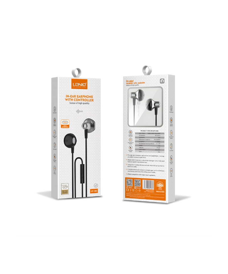 אוזניות חוטיות עם חיבור Type-C, מעניקות סאונד נקי ואיכותי לכל שימוש – מוזיקה, שיחות וסרטונים.